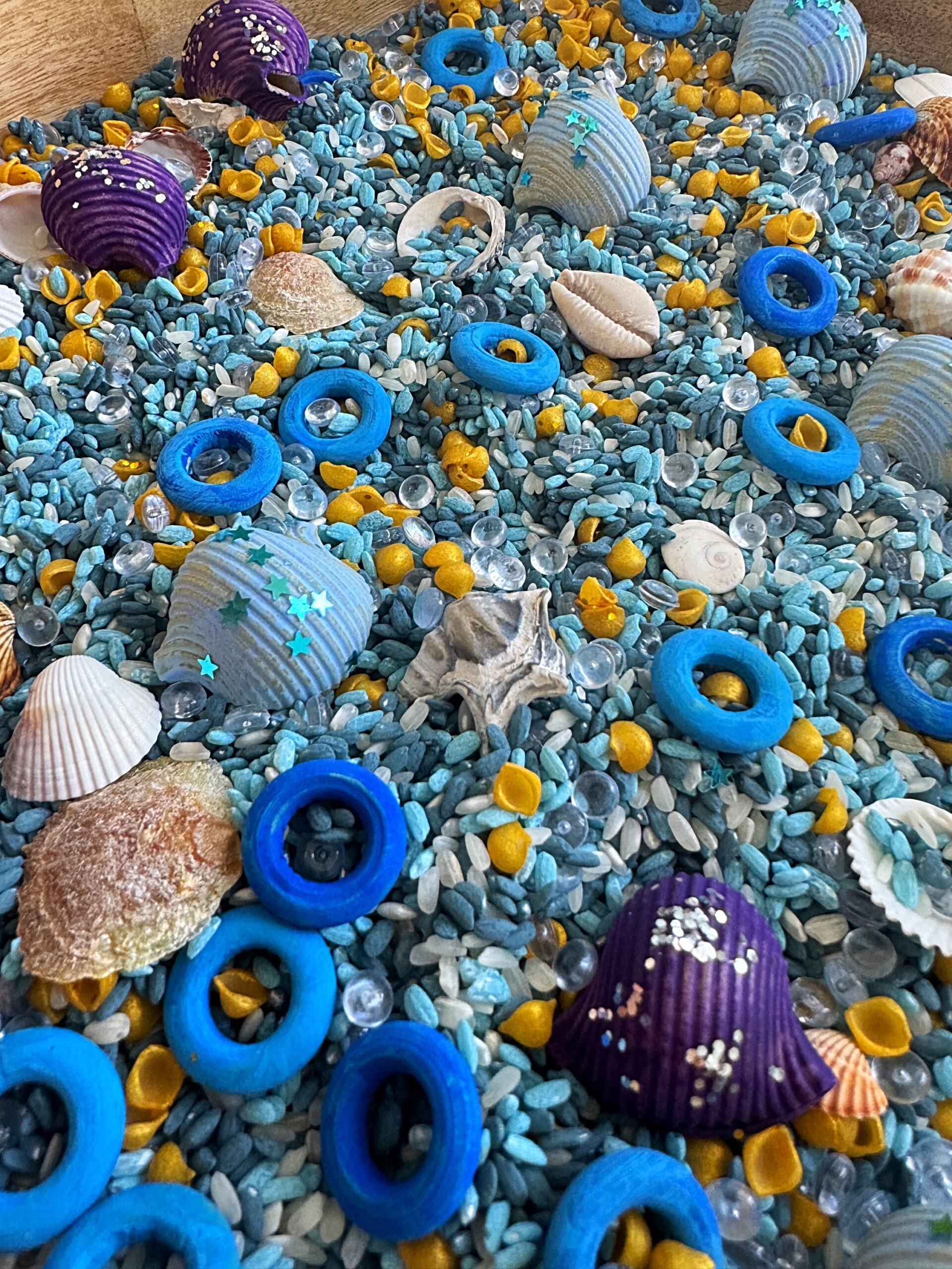 He creado una base sensorial inspirada en un mar en calma, pensada para invitar al juego tranquilo durante este verano.