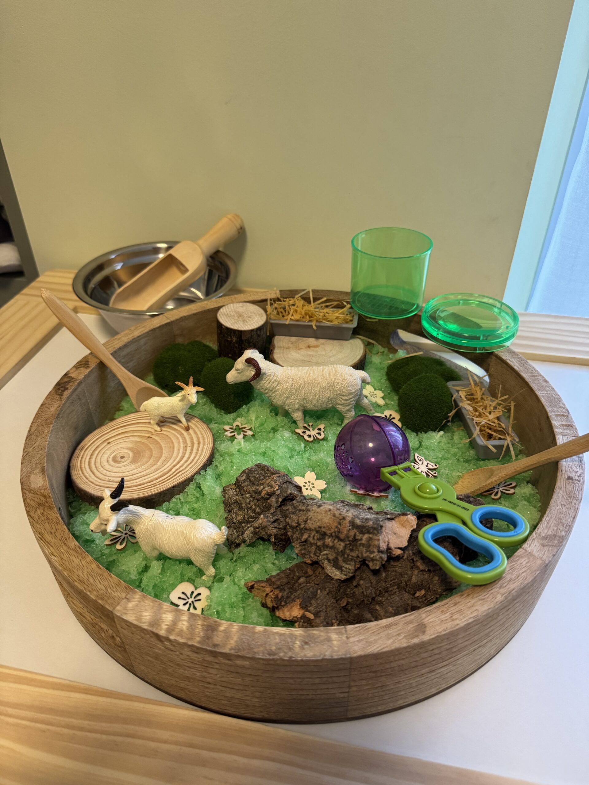 Una base sensorial con un elemento mágico teñido de verde para estimular el tacto.