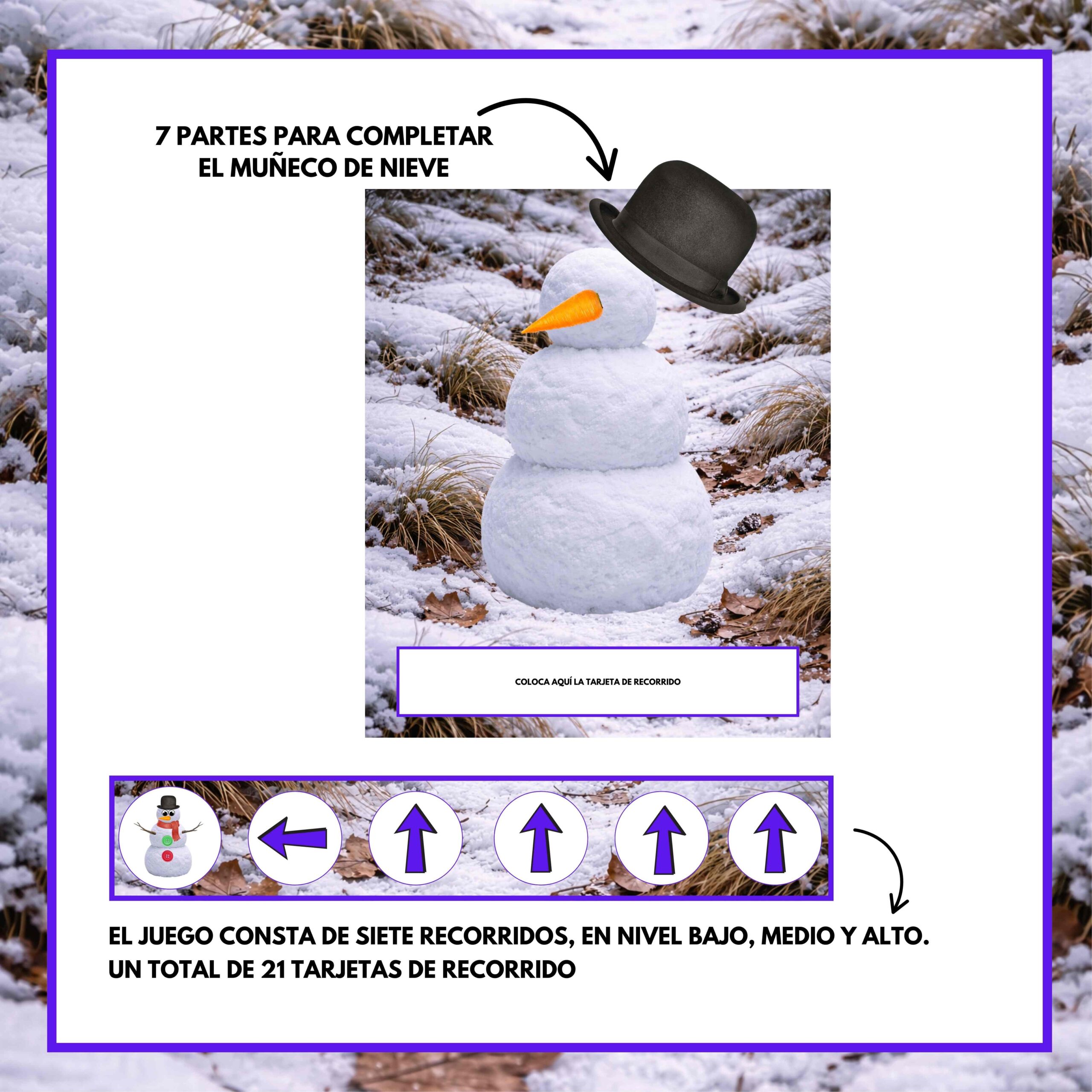 Al final de cada secuencia de flechas, llegará a un complemento, un complemento que le servirá para completar su propio cuerpo . ¡Una manera lúdica de trabajar el invierno mientras se divierten guiando al muñeco de nieve!